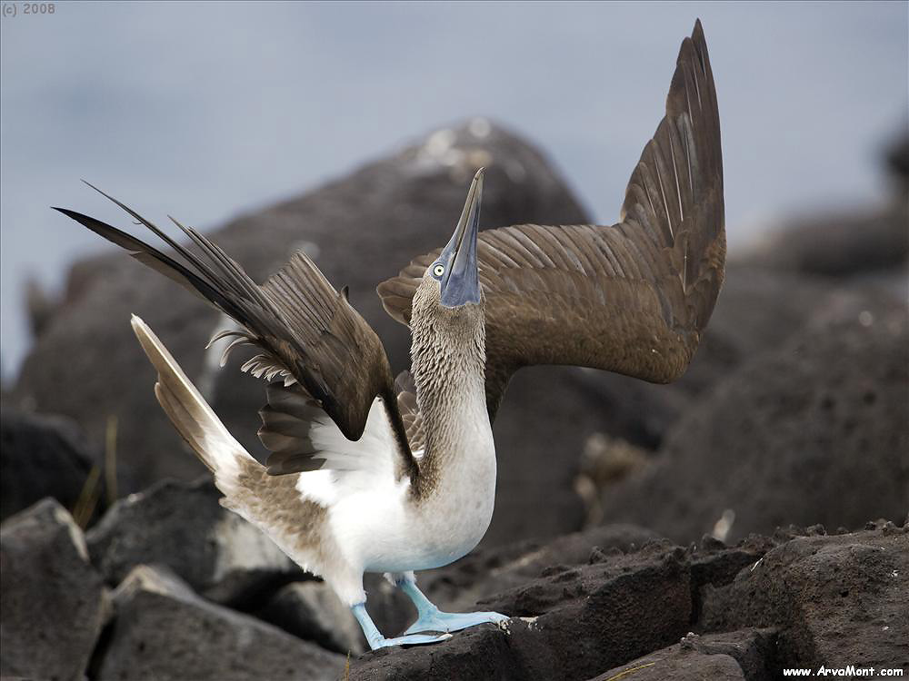 Blue Footed Booby "Skypointing" (displaying) - North Seymour, Galapagos Islands, Ecuador