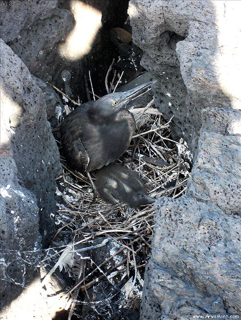 Galapagos (Lava) Heron with chick - Puerto Egas, Santiago Island, Galapagos Islands, Ecuador