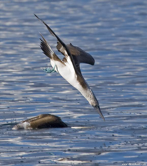 Boobies land. I read that they throw their feet up as speed brakes.