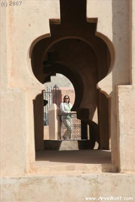 A PalaceThis was the palace of a wealthy man, who was the sultan's administrator. He used the palace, which is located very close to the sultan's, as both his residence and his office. The guidebook pointed out that this man had four wives and 24 ladies in his employ, all of whom had to be housed, presenting an interesting challenge to the architect! Each of the wives had apartments on the second floor. He ruled the front of the house. In the rear he built a ladies courtyard, where his harem lived. Rumor has it that he and his brother were eventually murdered by the sultan's mother, because she saw them as a threat to her son. The riches were cleared out and moved to Mekes. There were so many of them that it took 10 years! |