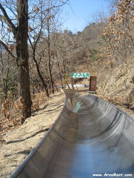 After many exhausting hours going up and down the mountains on the wall, we returned to the car park on this great slide!