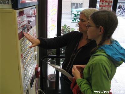 Fast food in Japan doesn't have the same connotations as in the US. In Japan, it simply means fast food, reasonably priced. So, we had to try it. Here we are eating at one of the many automat restaurants we encountered. You order and pay at the automat, turn in your receipt and then the wait staff bring you your food!