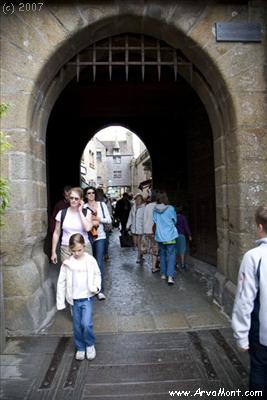 You enter over a draw bridge and heavily fortified gate and then wander through some narrow shop lined streets to get up to the abbey.