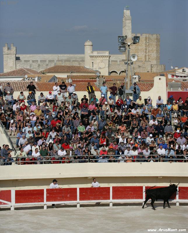 Maries de la Mer, we kept seeing postcards of some guy being chased over a fence by